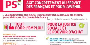Le Parti socialiste lance cette semaine une campagne populaire avec notamment 2 millions de tracts pour mieux faire connaître les décisions économiques et sociales majeures prises par le gouvernement en 2012 et qui vont produire leurs effets dans les mois qui viennent. La bataille est engagée sur tous les fronts : celui de la croissance, … Lire la suite