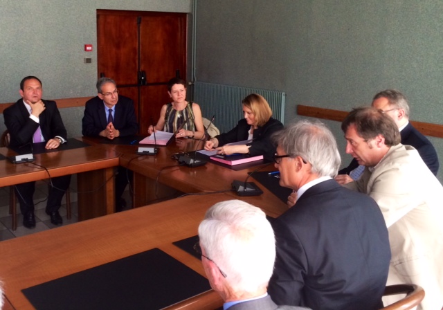 Mairie de Saint-Jean-Bonnefonds : signature d’une convention pour l’ouverture d’une unité d’enseignement pour enfants autistes en maternelle à l’école Lamartine, en présence du Maire Marc Chavanne, et de la Rectrice Françoise Moulin-Civil.