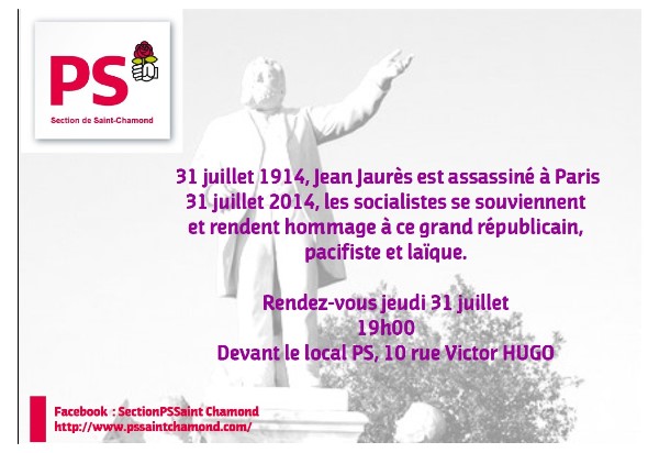 – à 18h00 place Jean Jaurès à Saint-Etienne, devant le buste de Jaurès, à l’initiative de l’association Jaurès dans la Loire et des Amis de l’Humanité,