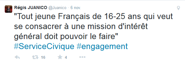 Dans le prolongement des différentes propositions que j’ai formulées pour améliorer le service civique pour atteindre cet objectif des 100 000 Services civiques en 2017, un amendement allant dans ce sens a été présenté par mon collègue Bruno Le Roux, au nom du groupe Socialiste Républicain et Citoyen. Il a été adopté le 3 novembre 2014, permettant ainsi de majorer les crédits du service civique de 25 millions d’euros pour la création de 5000 volontariats supplémentaires en 2015.
