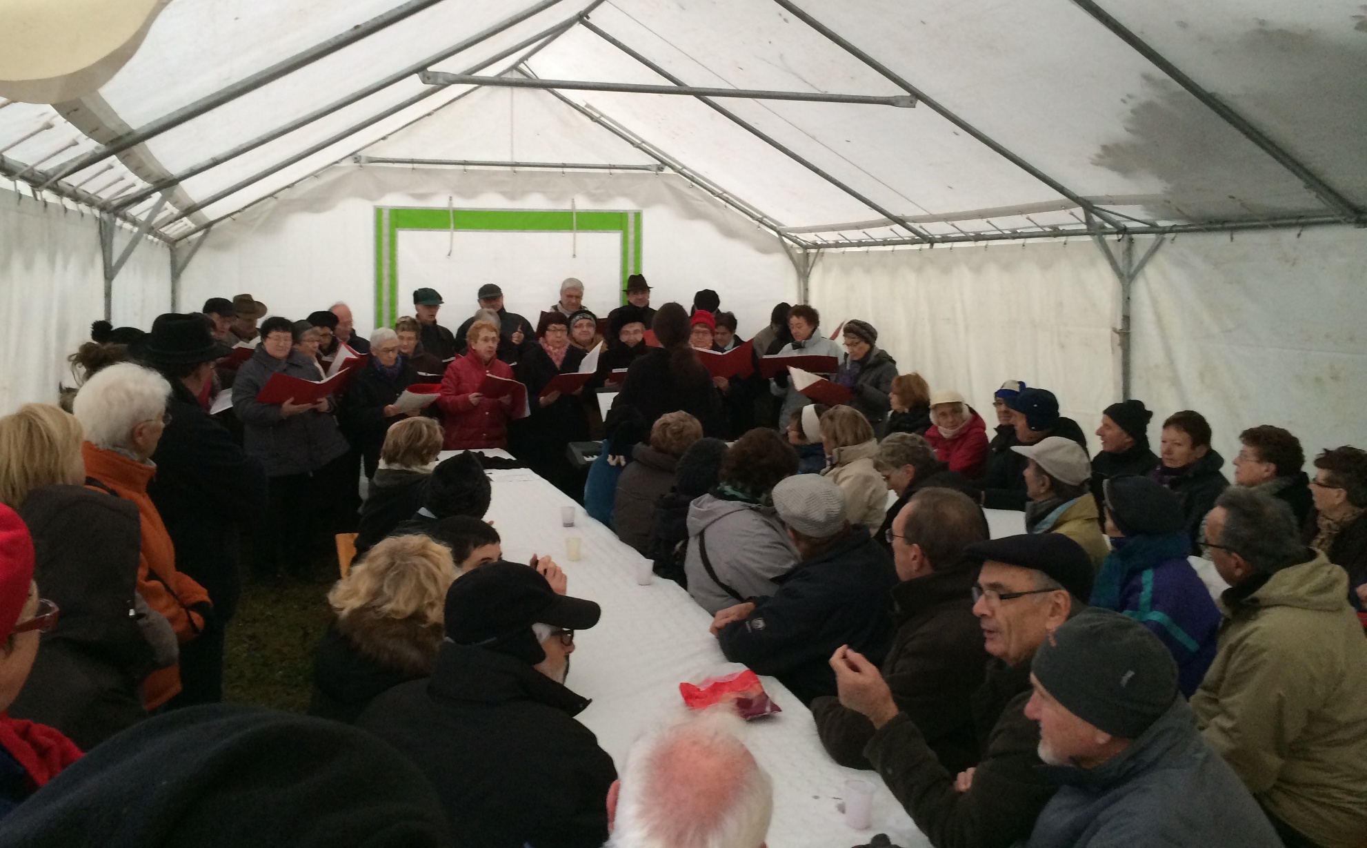 Téléthon 2014 au Cluzel, à l’arrivée de la marche au départ de Saint-Genest-Lerpt