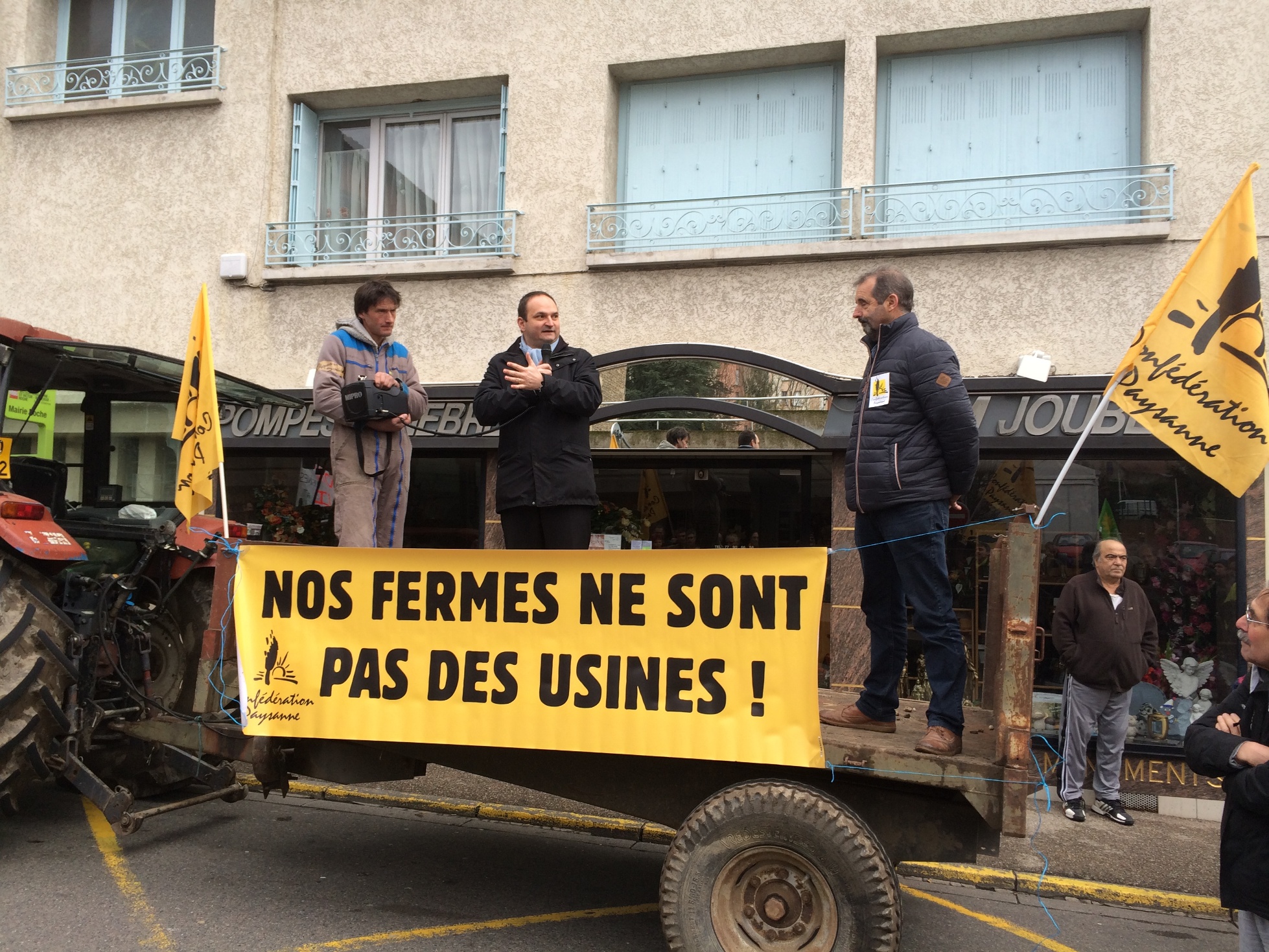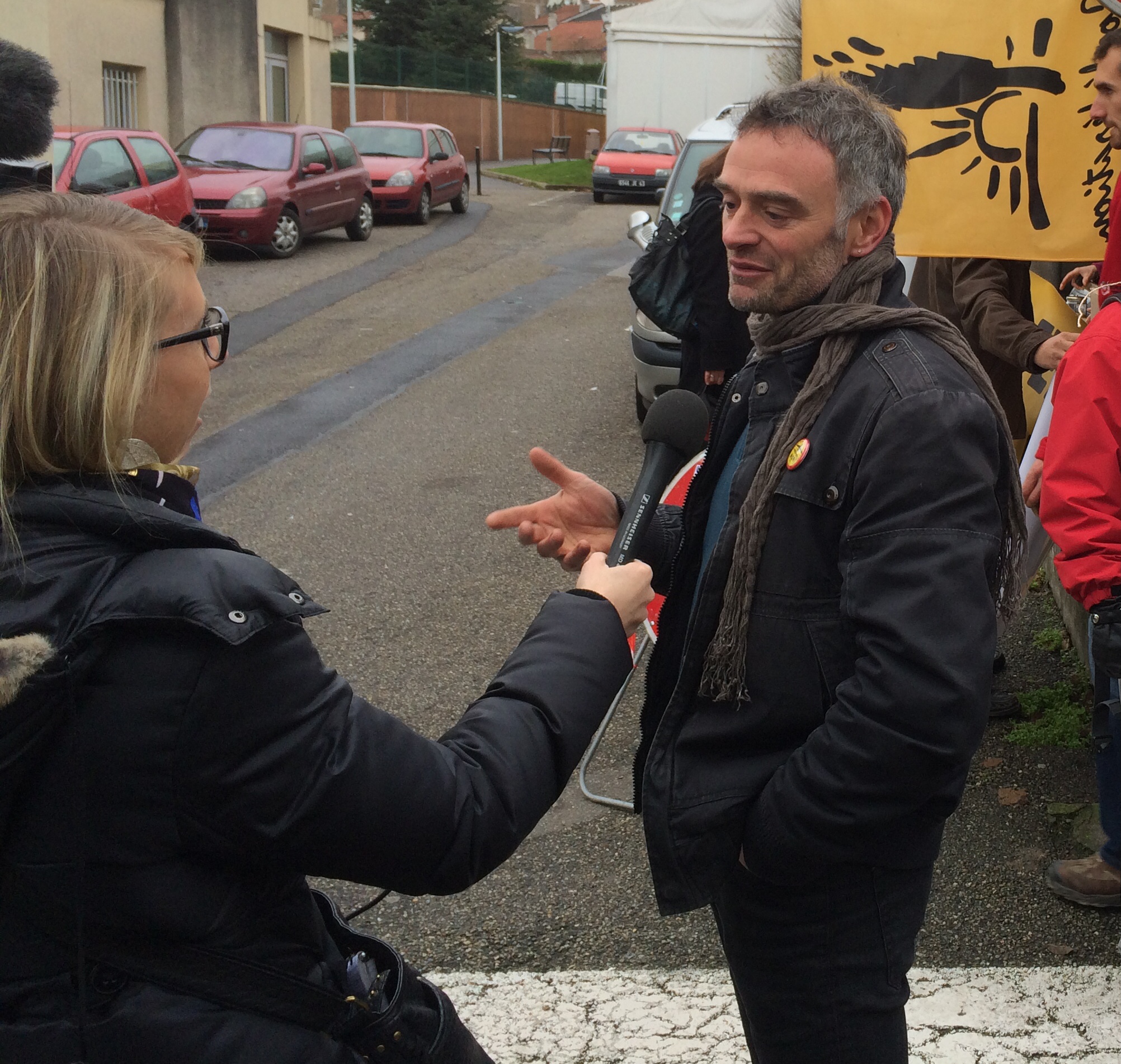 SOUTIEN L PINATEL 3Vendredi 12 décembre, j’étais présent, aux côtés de mes collègues élues Arlette Bernard, Conseillère générale, Cécile Cukierman, Sénatrice de la Loire, des Maires d’Unieux et de Roche-la-Molière, et d’autres, au rassemblement organisé par la Confédération Paysanne en soutien à son porte-parole national, l’éleveur lerptien Laurent Pinatel, convoqué une nouvelle fois, à titre individuel, devant la Police pour faits de dégradation, dans le cadre de l’affaire dite de « la ferme des 1000 vaches ».