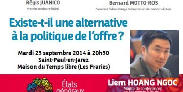 La fédération PS de la Loire et les sections de la vallée du Gier organisent une rencontre dans le cadre des Etats généraux du PS, mardi 23 septembre à 20h30 à Saint-Paul-en-Jarez. Cette première grande réunion thématique a pour vocation d’interroger la situation économique actuelle et les réponses que peuvent lui apporter les socialistes. La … Lire la suite