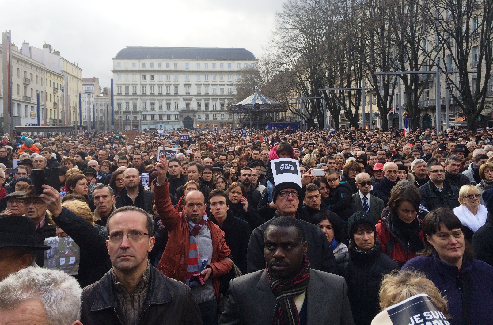 8 janvier 2015, journée de deuil national : minute de silence sur les marches de l’Hôtel de Ville de Saint-Etienne