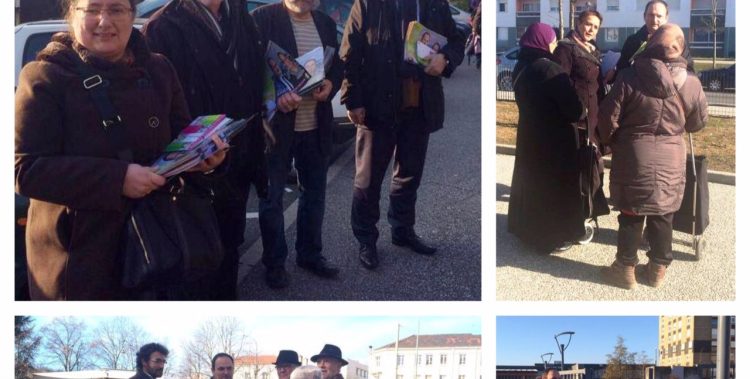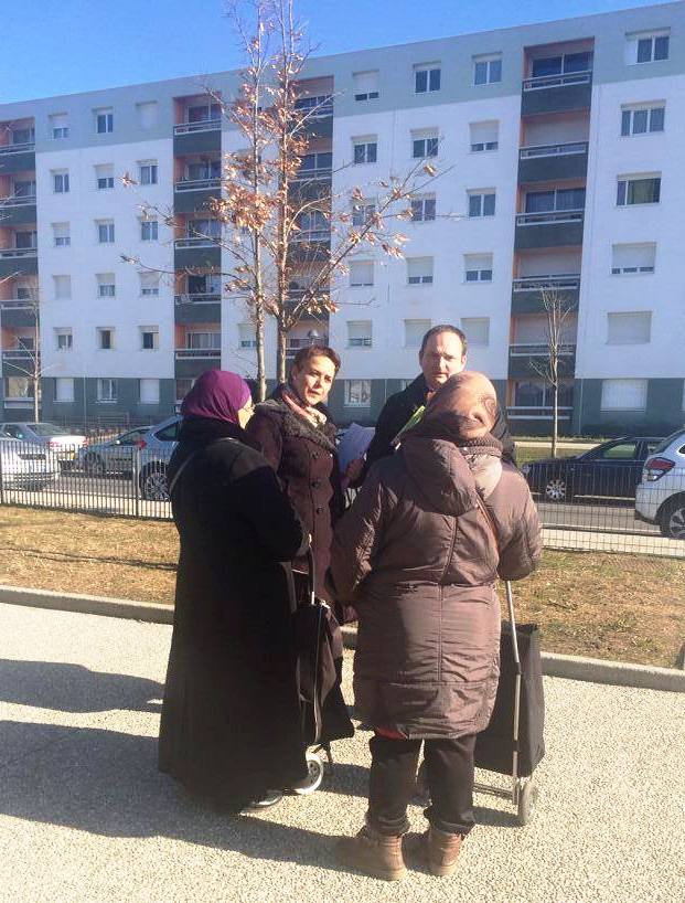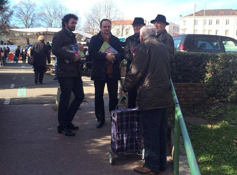 Sur le marché de la Terrasse avec mes soutiens mounards