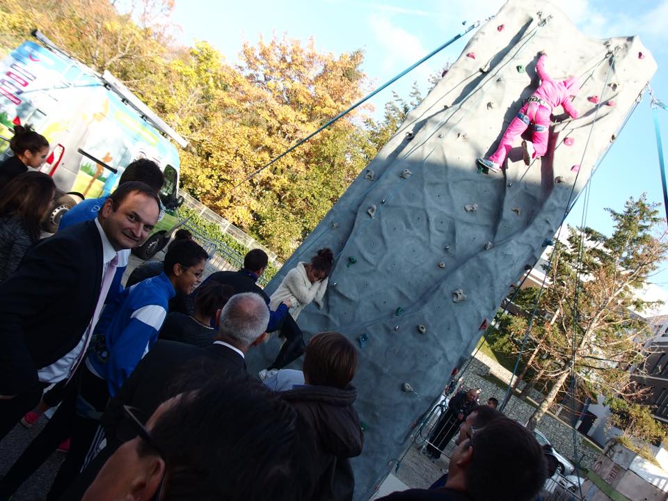 Lundi 19 octobre, nous avons inauguré avec le Préfet de la Loire Fabien Sudry et la Directrice Départementale à la Sécurité Publique, Noëlle Deraime, le rocher d’escalade itinérant de la CRS qui fait étape dans les locaux du Centre de Loisirs Jeunesse de la Police Nationale à Montreynaud, jusqu’au 23 octobre. Les fonctionnaires de police des compagnies républicaines de sécurité, spécialisés dans le domaine de la montagne, ont pu initier 300 jeunes issus des quartiers prioritaires de la politique de la ville, aux techniques de l’escalade et de la sécurité en montagne. Énumérer les comportements à risques et dangereux, aider à les identifier et les anticiper pour limiter les actes imprudents, telle est l’ambition de cette action financée par le fonds interministériel de prévention de la délinquance.