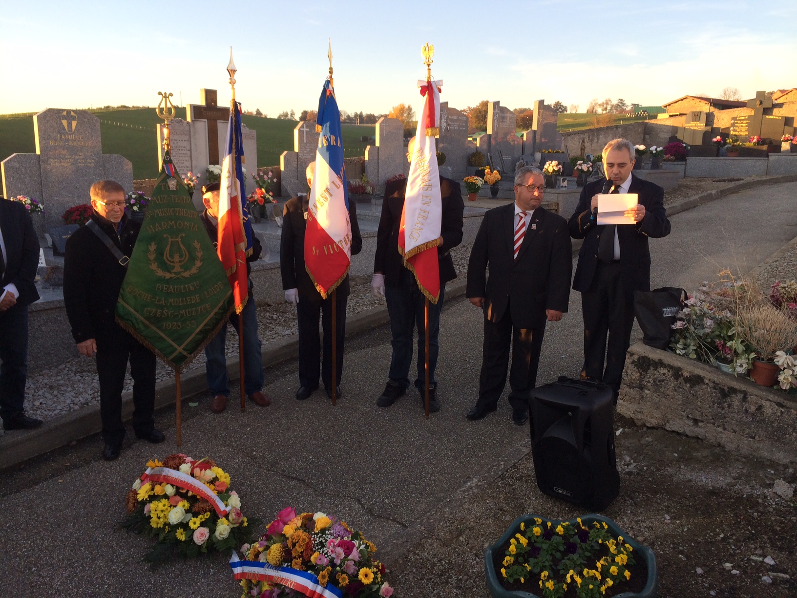 Vendredi 30 octobre, j’ai pris part comme chaque année à la cérémonie du souvenir franco-polonais au cimetière de Beaulieu à Roche-la-Molière, en présence du Maire de la commune et de Pierrick Courbon, Conseiller départemental. Cette commémoration émouvante fut l’occasion de rappeler le comportement héroïque de nombreux jeunes polonais qui se sont battus les armes à la main aux côtés des Alliés, mais aussi dans la Résistance au sein du réseau POWN, comme le Rouchon Joseph Chwalski, arrêté et exécuté en 1944 par la Gestapo, comme nous l’a rappelé avec beaucoup d’émotion son ami Florjan Piasecki.
