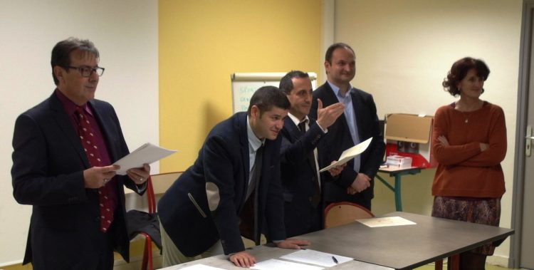 Remise des diplômes du Brevet aux anciens collégiens de Marc Seguin, en présence d’Achour Béloucif, ancien Principal, et de son successeur, Gérard Boyet