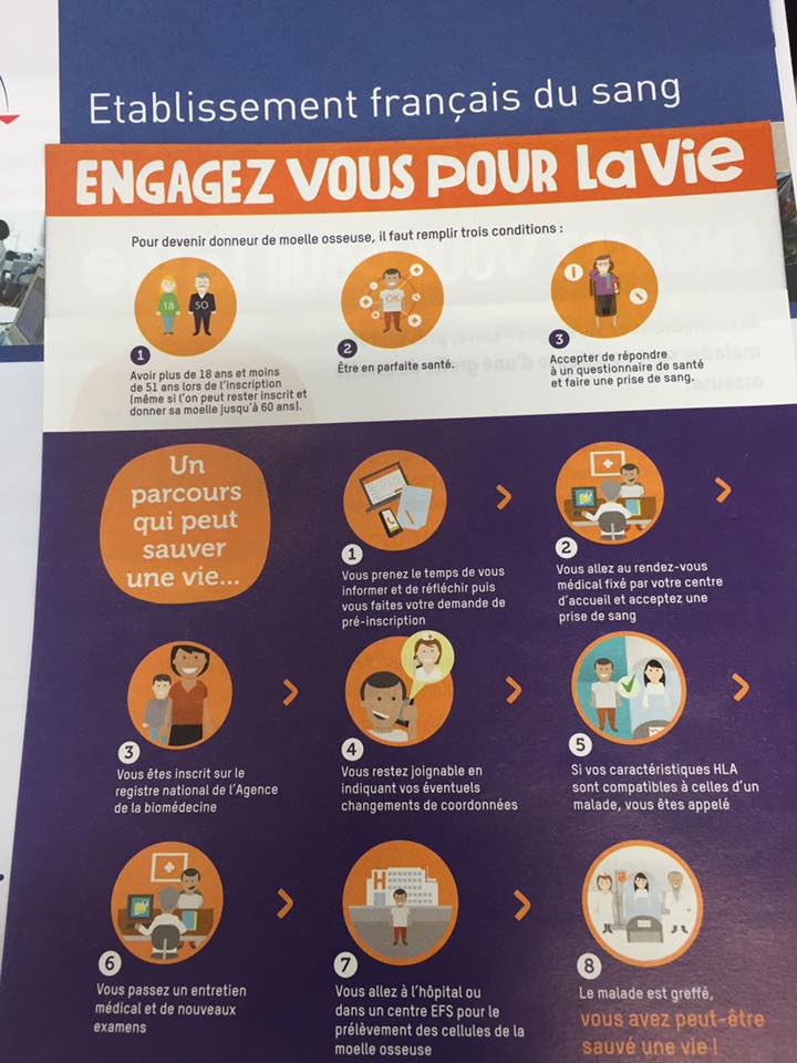 A l’occasion de cette collecte, une information particulière était donnée sur le don de moelle osseuse. N’hésitez pas à vous inscrire au registre des donneurs volontaires de moelle : 100 malades sont en attente d’une greffe dans notre région et la France ne compte que 250 000 inscrits.
