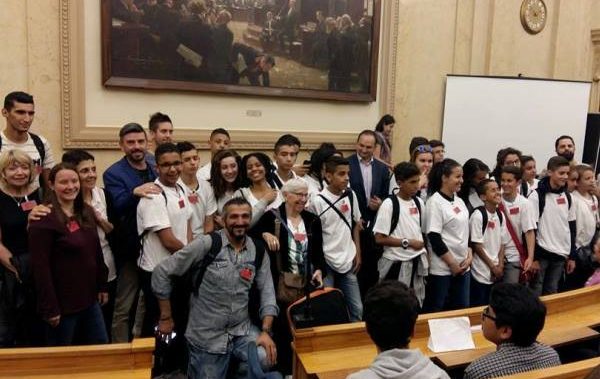 J’ai été très heureux d’accueillir dans le « temple de la citoyenneté » une forte délégation ligérienne de 23 jeunes entre 14 et 16 ans et leurs accompagnateurs des structures de l’Amicale Laïque Chapelon, du service jeunesse de Saint-Priest-en-Jarez et de Hode (Hymne officiel des Droits de l’Enfant), du Secours Populaire, de l’Espace Boris Vian, mais aussi de Firminy.
