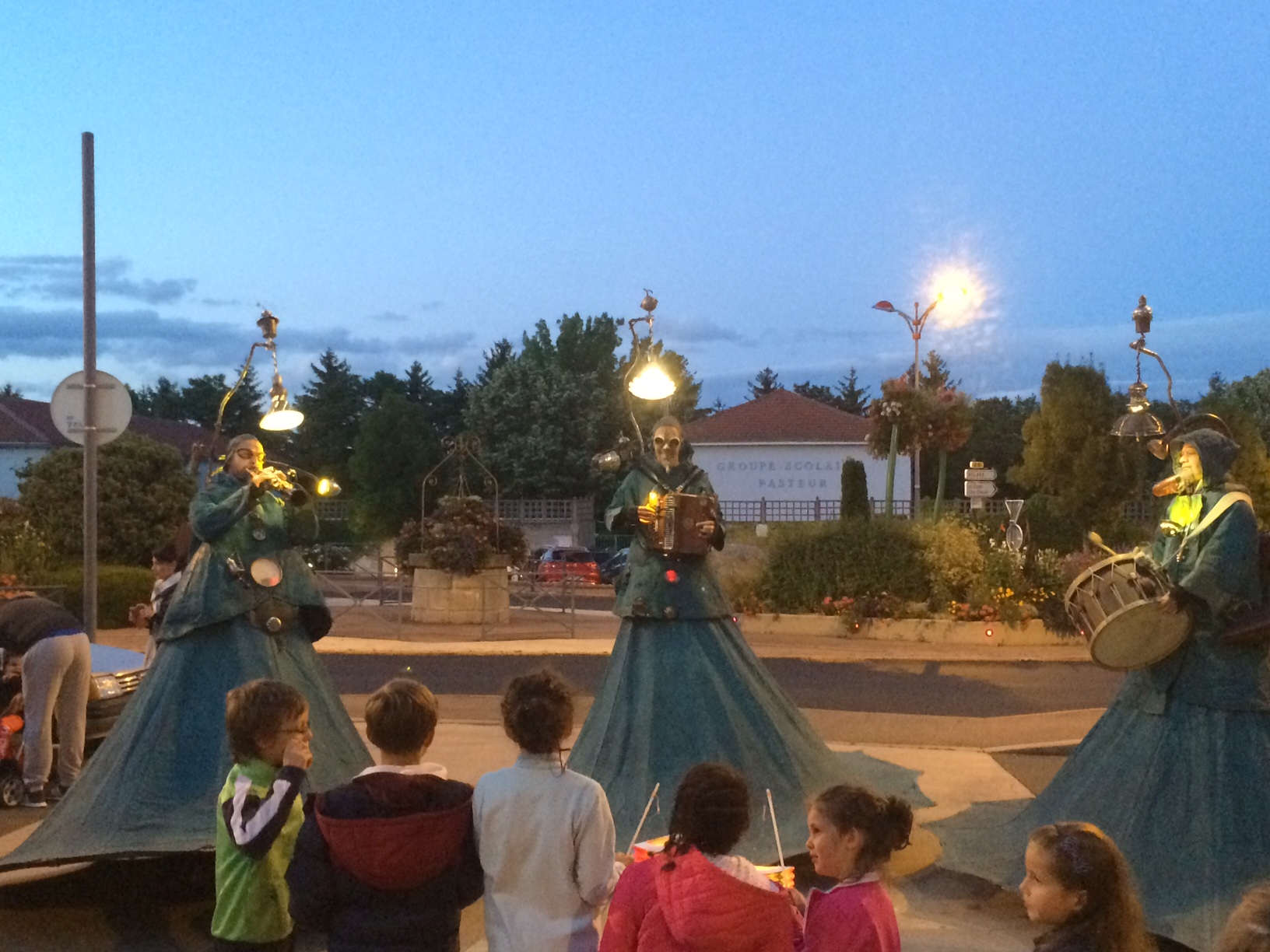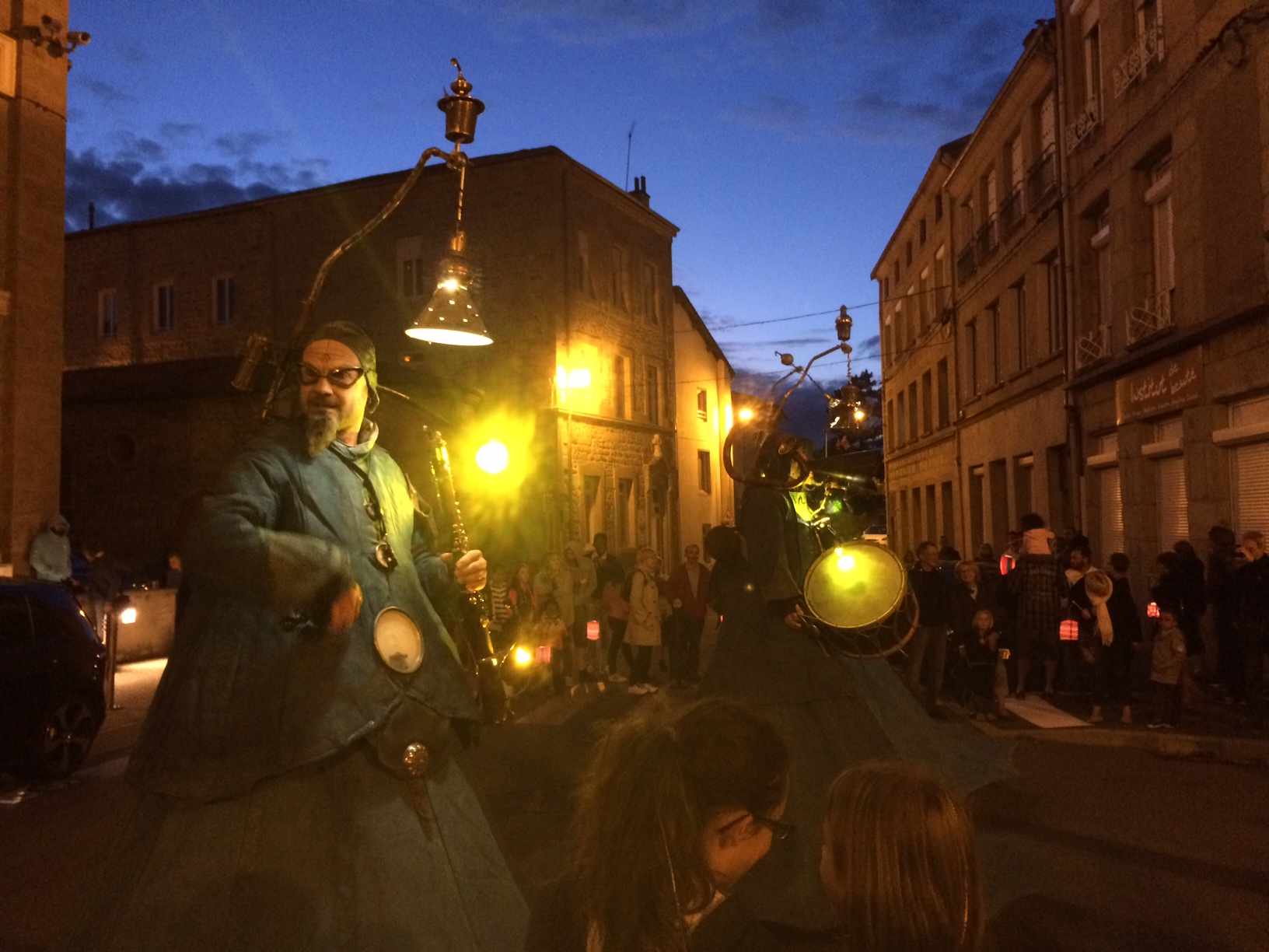 Avant la retraite aux flambeaux à Saint-Genest-Lerpt le 13 juillet, avec la troupe stéphanoise « Celestroï »