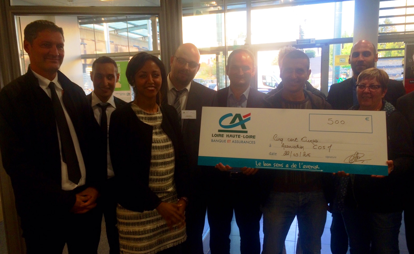 Nous étions jeudi 22 septembre cosm1réunis à l’agence du Crédit Agricole sur la place Mozart, pour la remise d’un chèque de 500€ à la section foot du COSM. Le Club est en plein renouveau et obtient des résultats sportifs encourageants sur le terrain.