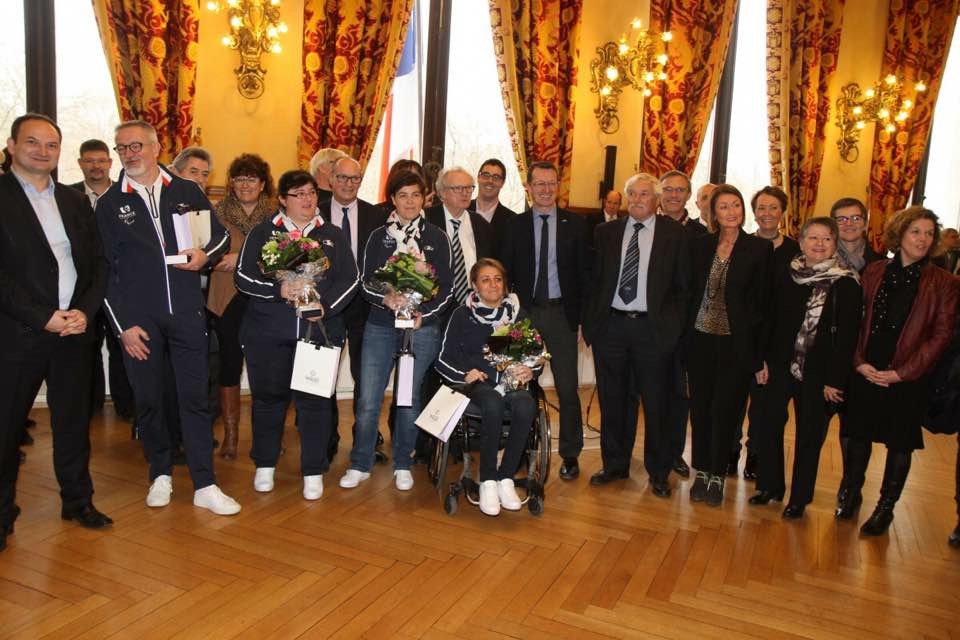 Avec la famille SANTELIA, de l’association Judo Loire (sportifs récompensés : Alexia & Damien, entrainés par leur père Angelo) Avec les handballeuses Floriane ANDRE et Léa SAINT-ROMAIN, du Saint-Chamond Handball Pays du Gier, et Gilles Monnier