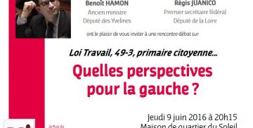 La fédération du PS de la Loire accueille Benoît Hamon, ancien ministre et député des Yvelines, à Saint-Etienne ce jeudi 9 juin, pour une réunion publique sur le thème « Loi Travail, 49-3, primaire citoyenne… Quelles perspectives pour la gauche ? », à la maison de quartier du Soleil à 20h15. Benoît Hamon animera ce … Lire la suite