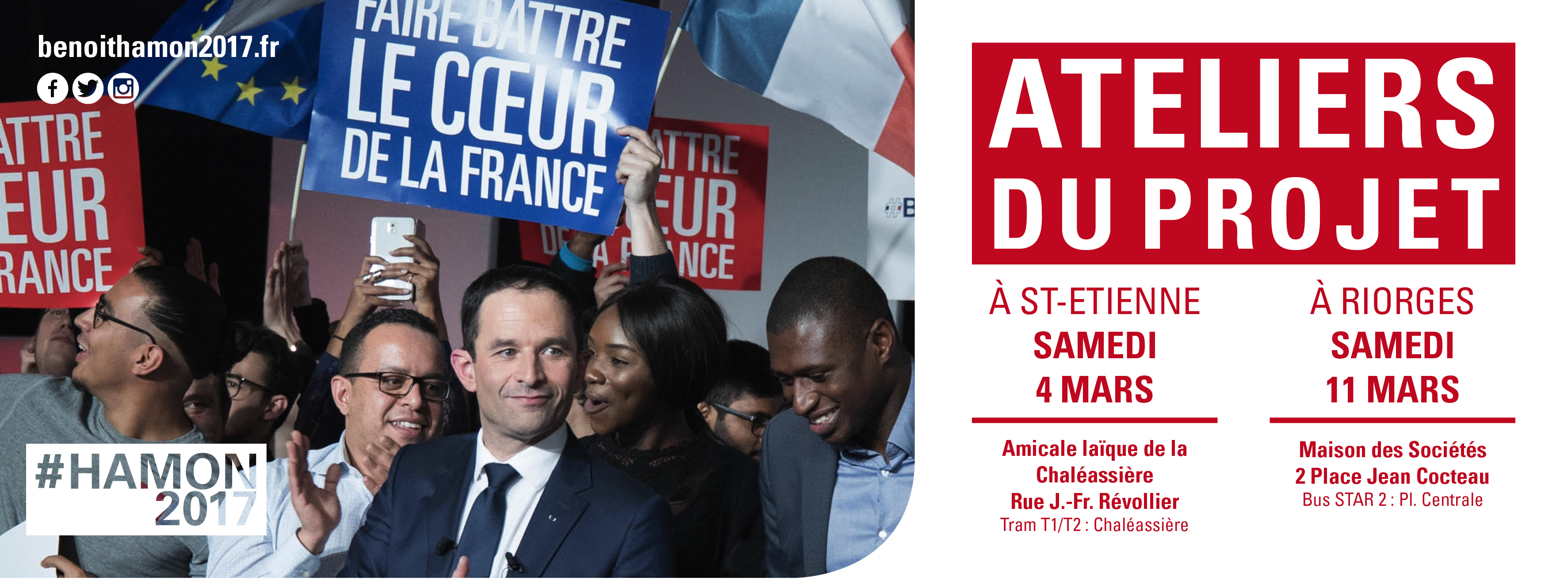 Pour y participer dans la Loire, nous vous proposons les «Ateliers du projet» : une journée pour mieux connaître et approfondir les propositions de Benoît Hamon et en formuler de nouvelles.