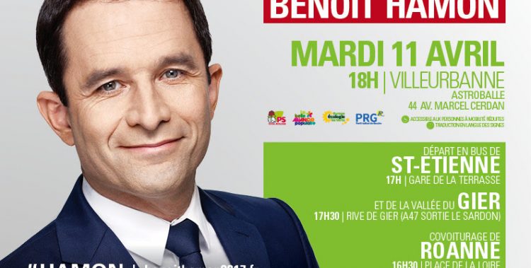 Benoît Hamon présent à Saint-Etienne puis en meeting à Villeurbanne le 11 avril