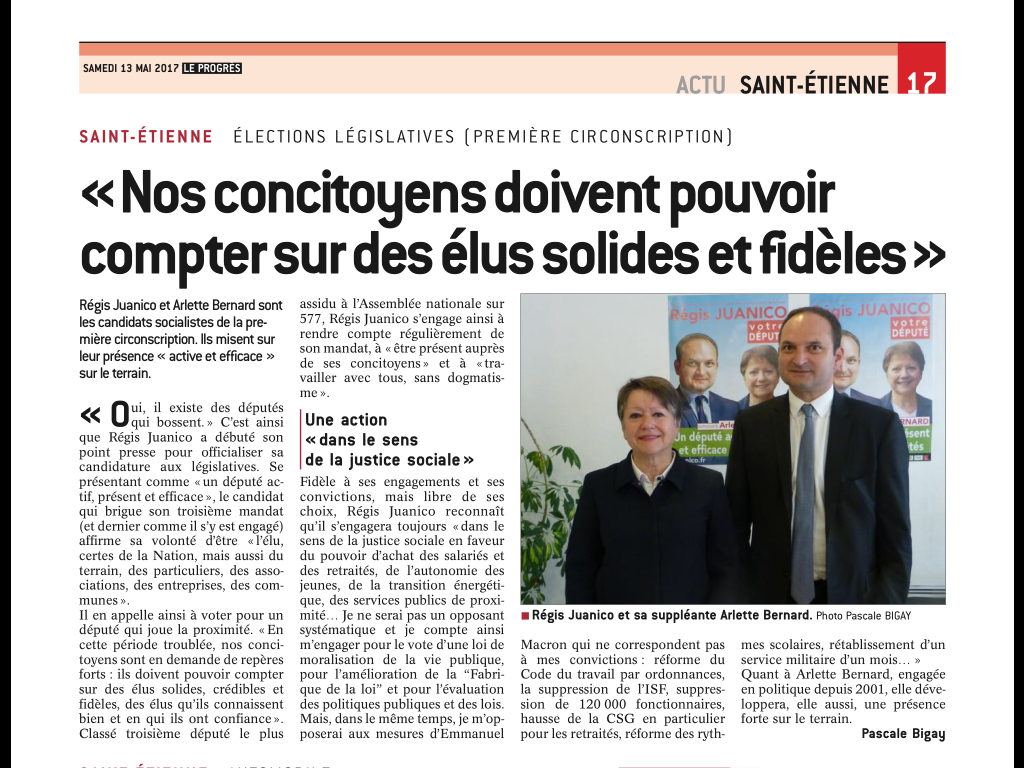 C’est pourquoi, dès le 11 juin, avec Arlette Bernard, je demande aux électeurs de la 1ère circonscription de faire le choix du sérieux, de la constance dans le travail et de la clarté.