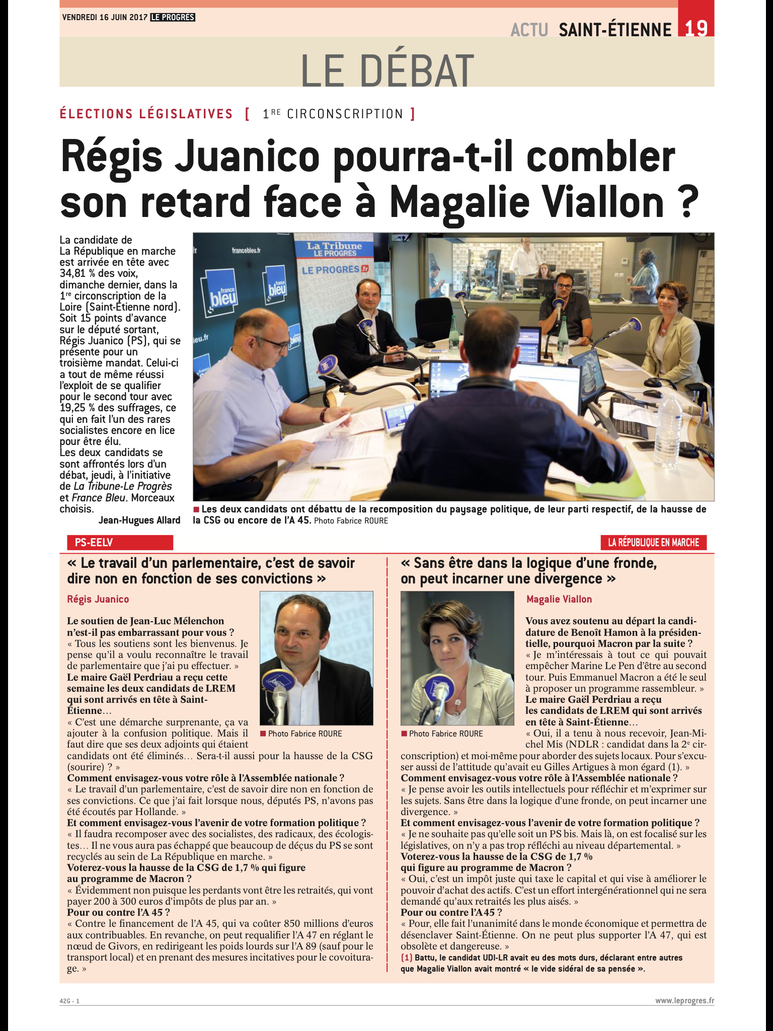 Suivez avec nous le débat de l'entre-deux-tours dans la 1ere circonscription de la Loire avec Magalie Viallon (LREM) et Régis Juanico (PS)