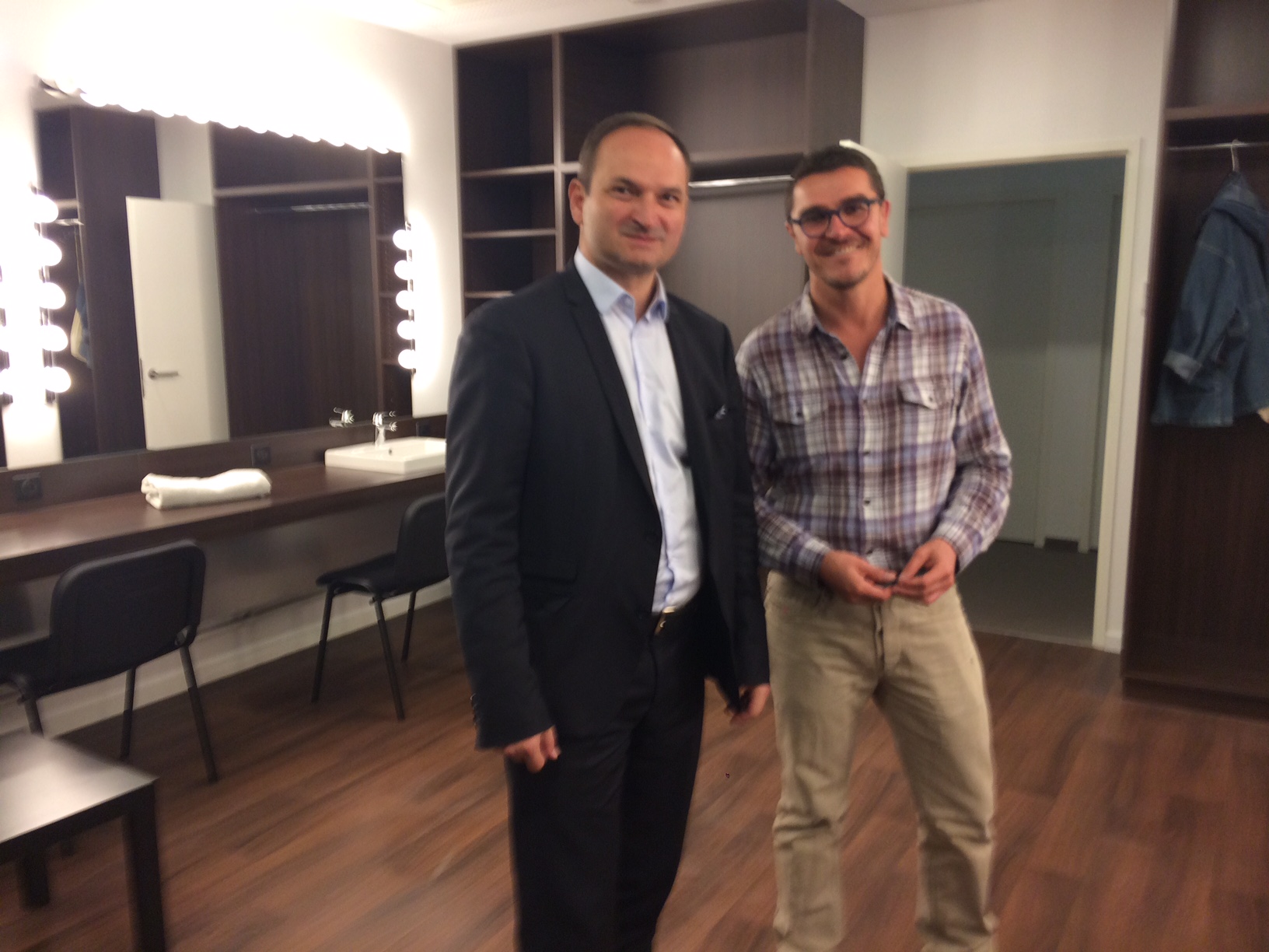 Avec Arnaud Meunier, directeur de la Comédie, dans la salle Jean Dasté