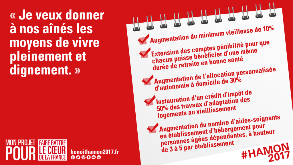 Lors du précédent quinquennat, la loi d’Adaptation de la Société au Vieillissement a permis de mobiliser plus de 750 millions d‘euros pour mieux accompagner les personnes âgées à domicile. Il est désormais temps de faire un effort au moins équivalent en direction des établissements. Ainsi, nous avions fait lors de la campagne présidentielle, avec Benoît Hamon, de l’insuffisance des moyens humains et financiers consacrés à l’accueil de nos aînés en établissement, une priorité à traiter.