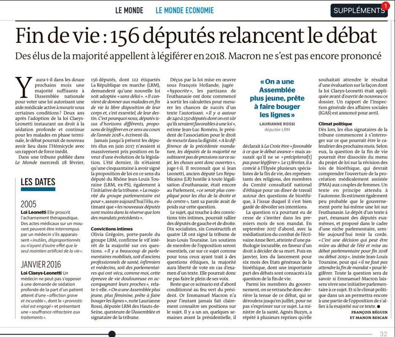 Bonjour, quel rapport avec la fin de vie ? Par ailleurs, aucun négativisme sur le sujet et encore moins une raison de ne rien faire : je milite (et en l’occurrence, avec d’autres Députés de toutes sensibilités politiques, dont LREM) pour une nouvelle loi sur le fin de vie… Pour que les choses bougent !