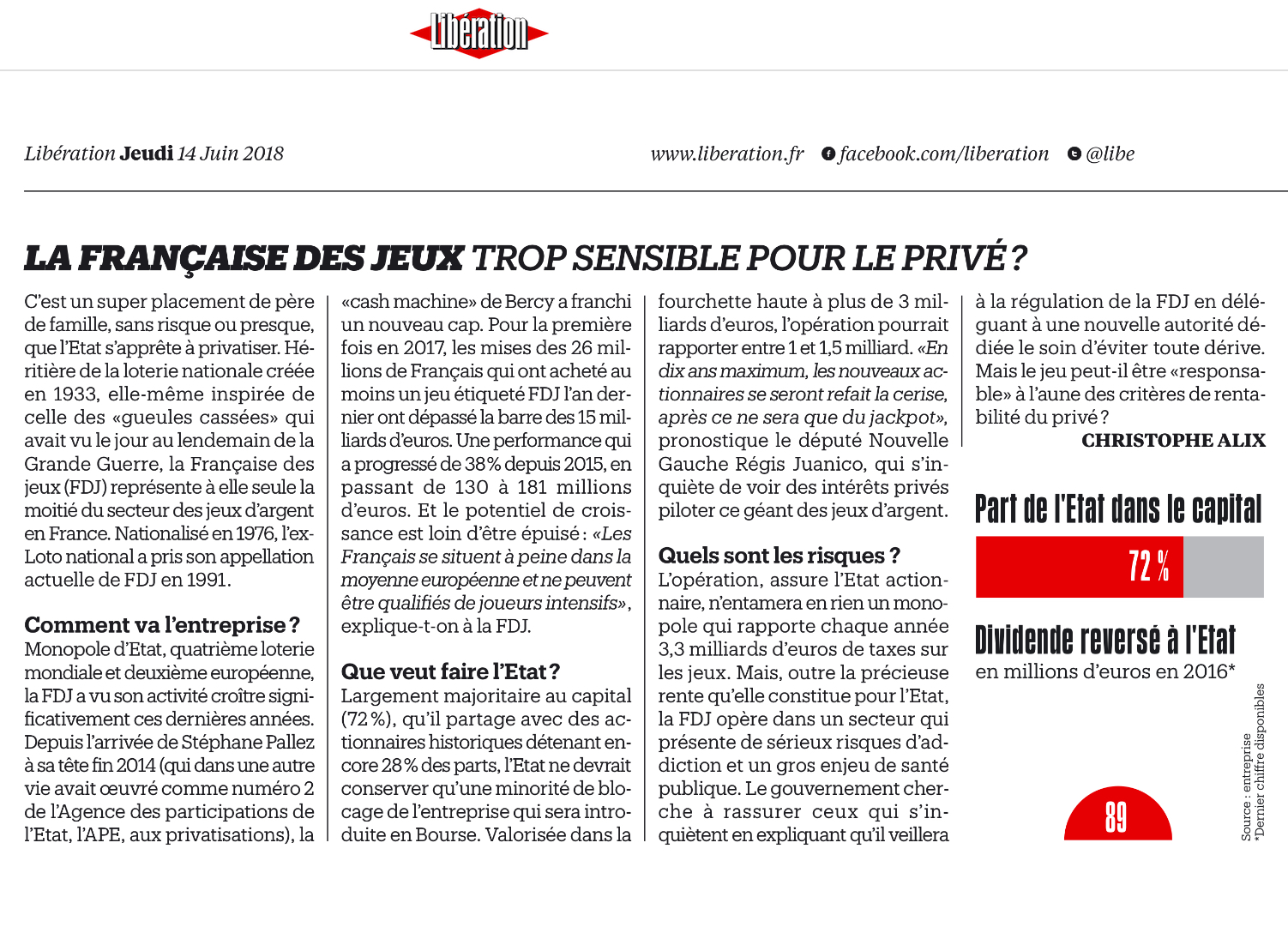Ici même, le 21 février dernier, j’alertai le Ministre des Comptes publics Gérald Darmanin sur les risques d’une privatisation de la Française des Jeux.