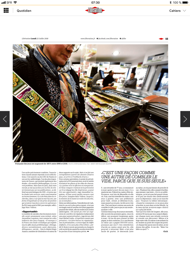 Il s’agit d’éviter un développement excessif des jeux en France. Qu’il s’agisse des jeux de grattage, du loto ou du pari sportif, tous resteront de l’ordre du monopole. Et une régulation s’appliquera. Je souhaite, et j’en ai discuté longuement avec Gérald Darmanin, qui a autorité sur la Française des jeux, qu’une autorité de régulation soit mise en place, parce qu’il y a un risque d’addiction, que je ne mésestime pas.