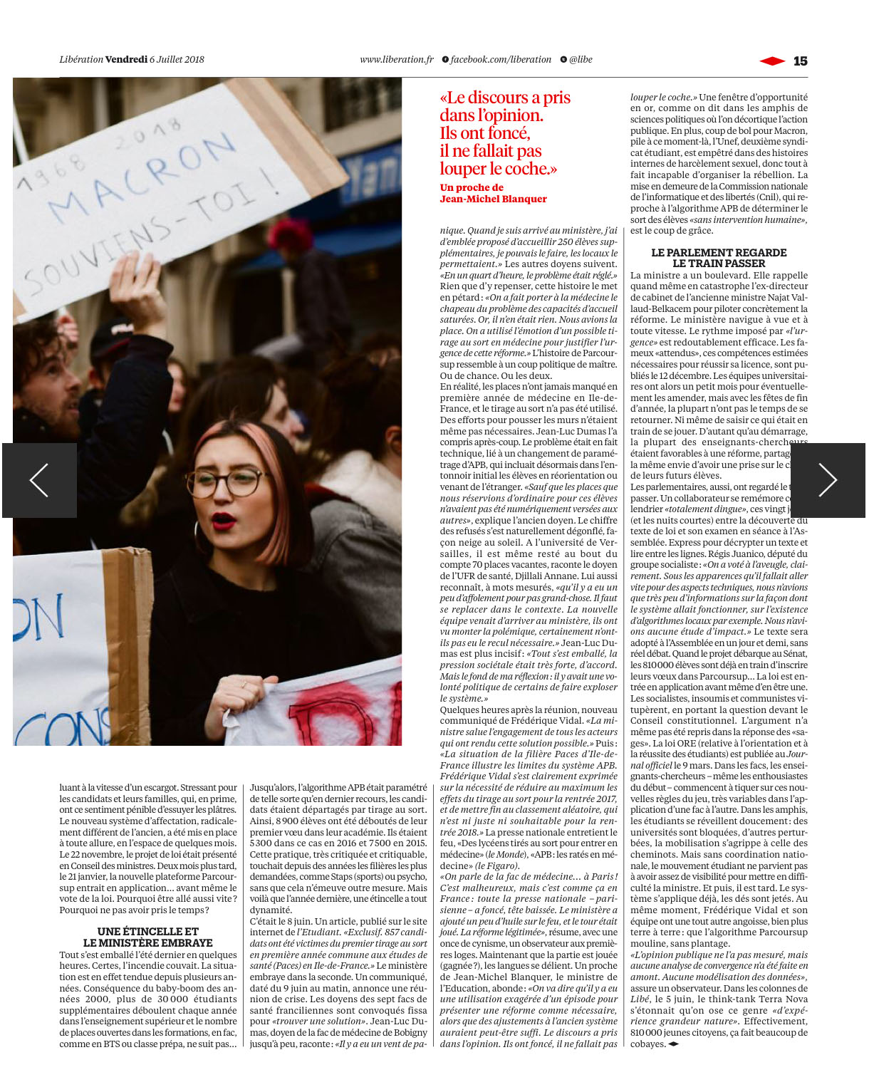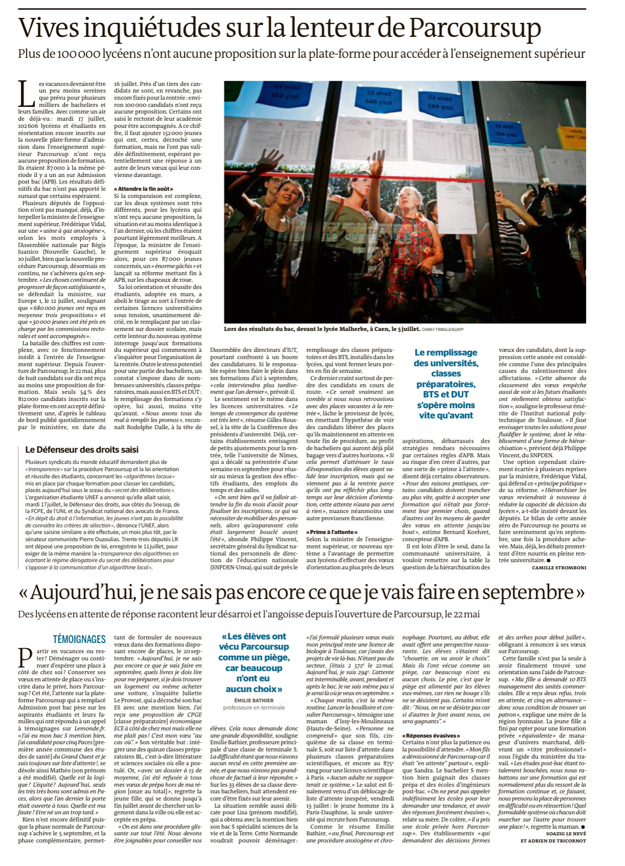 Alors que pour la Ministre de l’Enseignement supérieur, Frédérique Vidal, tout va très bien avec Parcoursup, je suis revenu, mardi 10 juillet, sur cette usine à gaz anxiogène, créée dans la précipitation et sans étude d’impact.