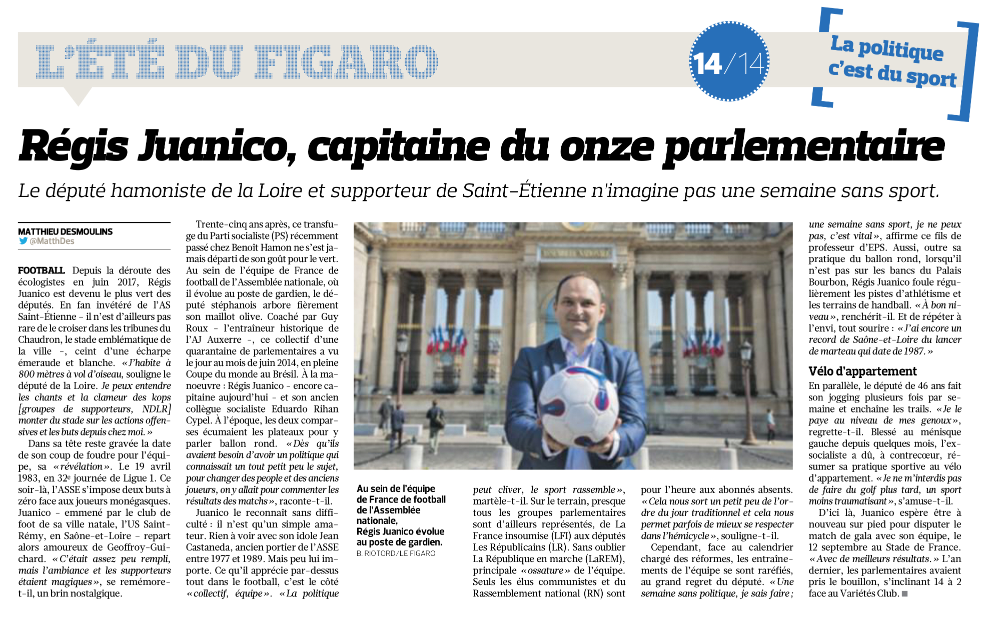 À lire dans le cadre de la série de l’été du Figaro, « La politique, c’est du sport », le portrait du jour signé Matthieu Desmoulins : « Régis Juanico, capitaine du onze parlementaire ».