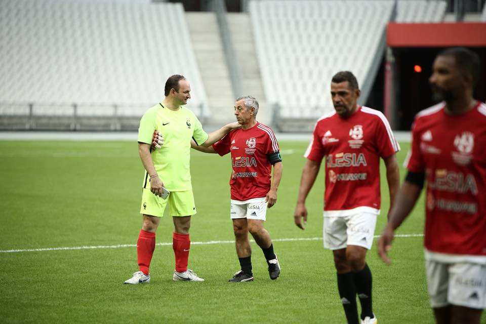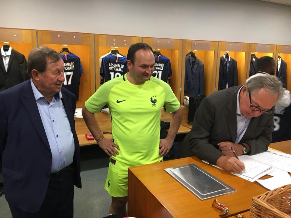Le coup d’envoi a été donné par Brigitte Macron et Michel Platini. Des échanges de fanions ont eu lieu avec Alain Giresse, en tant que capitaine des 40 députés qui arboraient pour la première fois sur leur maillot bleu les deux étoiles de champions du Monde. Un nouveau coach de haut niveau était à nos côtés : Gérard Houllier, toujours épaulé par le fidèle Guy Roux !