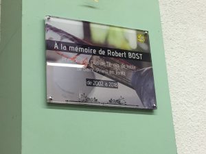 Sept mois après sa disparition, la Mairie de Saint-Priest-en-Jarez a souhaité honorer sa mémoire en dénommant la salle du club de tennis de table, dont il était Président, à sa mémoire, en présence de sa famille et de nombreux amis.