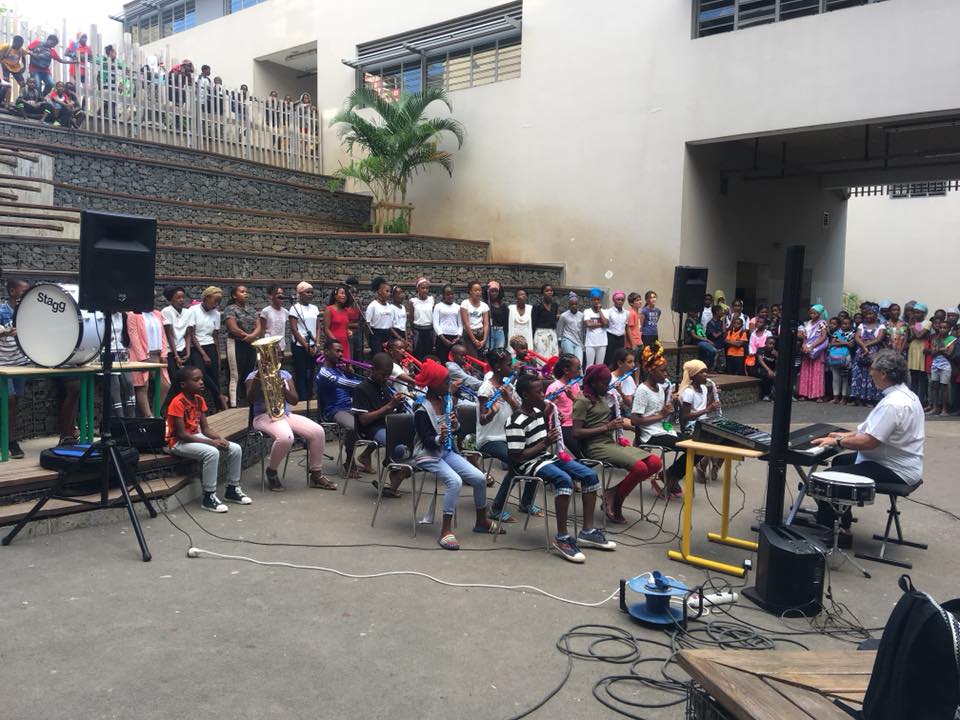 Rentrée en musique au collège de Majicavo de Mayotte à 7 heures du matin, l’un des plus grands collège de France avec… 1800 élèves. Classé en REP+, Majicavo est le seul collège Français qui compte une fanfare scolaire avec 6 heures d’enseignement musical par semaine !
