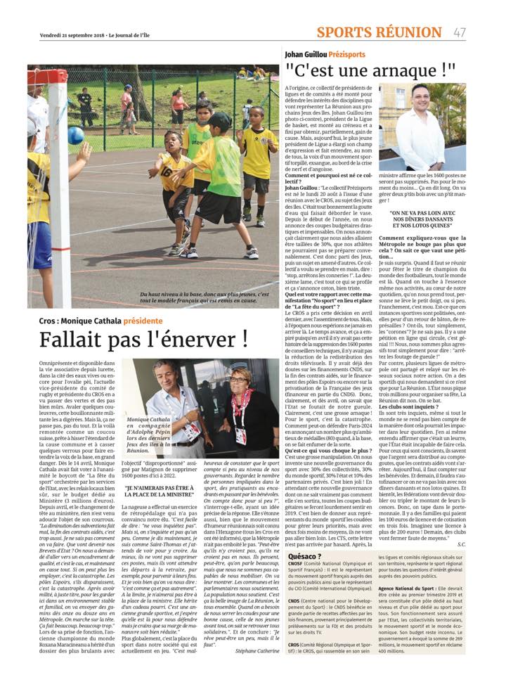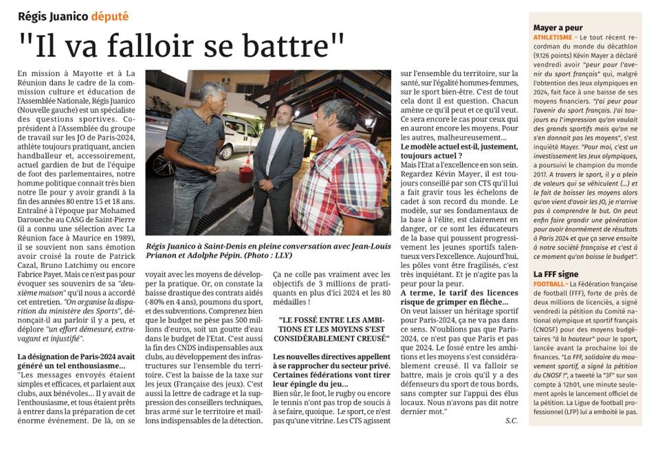 Retrouvez mon entretien au Journal de l’Ile de la Réunion à l’occasion de la grève du mouvement sportif Réunionnais pour protester contre la baisse des moyens pour le sport amateur.