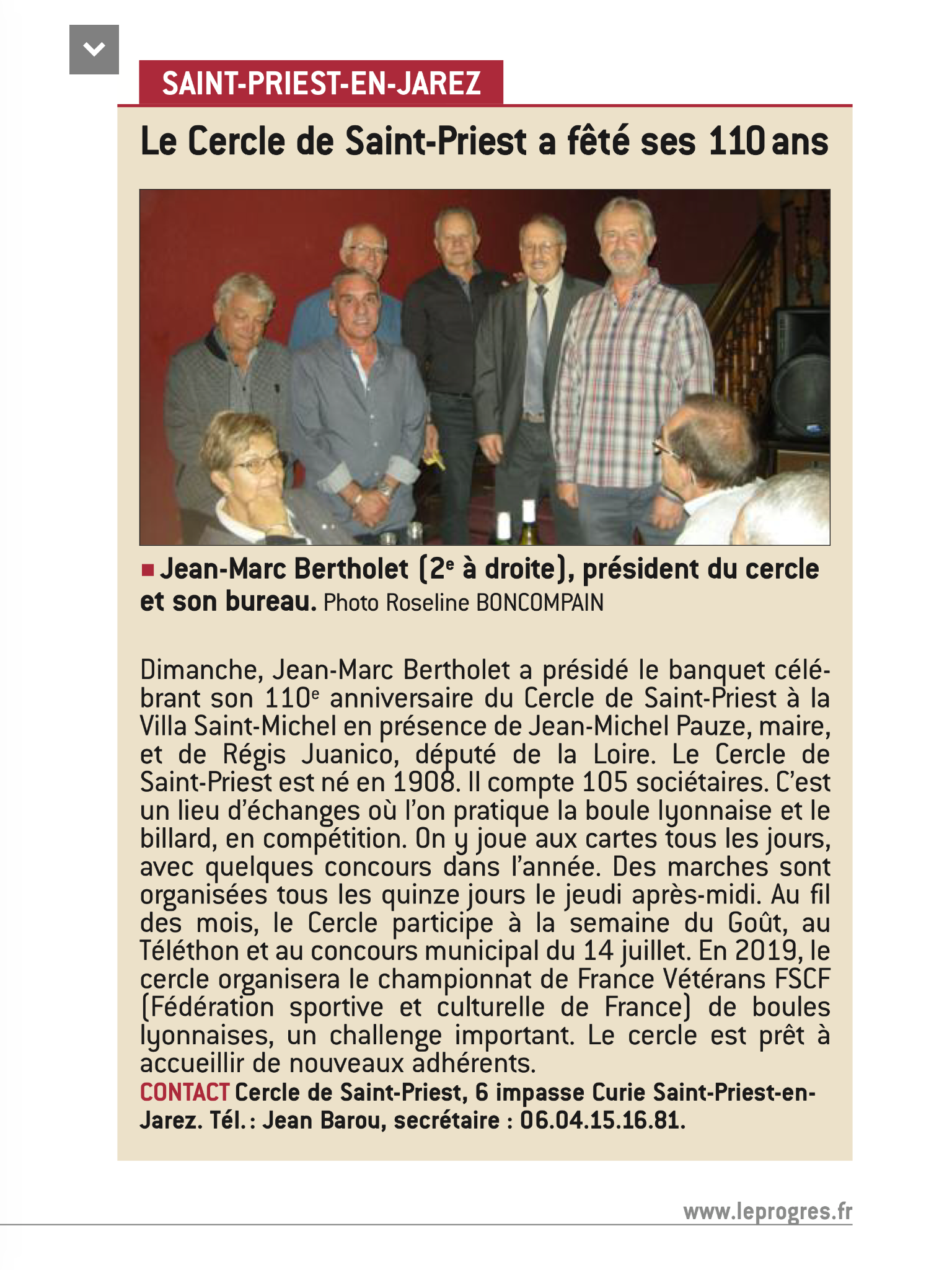 Le Cercle de Saint-Priest-en-Jarez fête ses 110 ans !