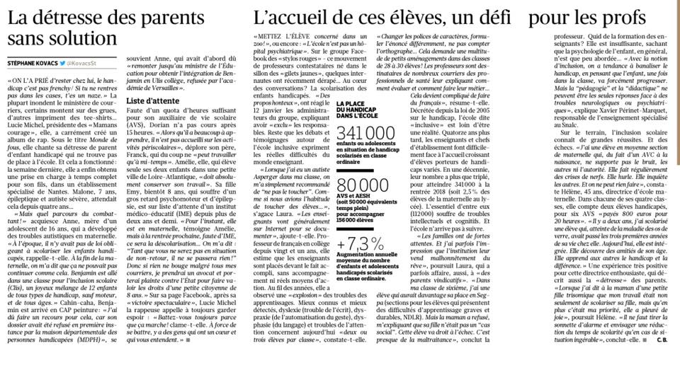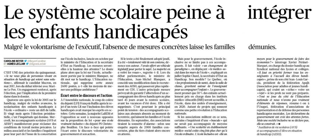 En effet, si le nombre d’élèves en situation de handicap scolarisés en milieu ordinaire est passé d’environ 100 000 en 2006 à plus de 320 000 en 2017, la qualité de la scolarisation et des accompagnements proposés ne répond pas toujours complètement aux attentes des familles.