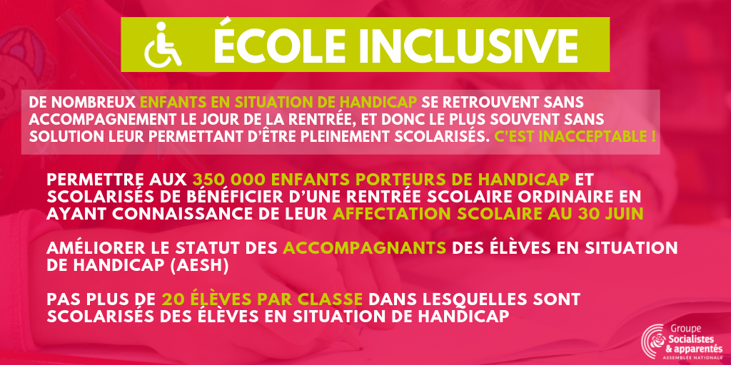 Nous avons voté dans la nuit du jeudi 31 janvier, la proposition de loi sur l’école inclusive des Députés Socialistes et apparentés, malheureusement vidée de sa substance par la majorité parlementaire :