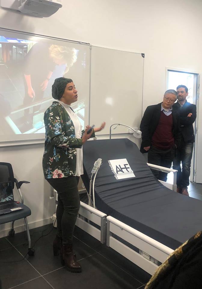 Nous avons visité le Med Tech Lab (un livinglab) qui expérimente des nouveaux services et outils pour maximiser les besoins et la prise en charge des patients. Ainsi, afin d’anticiper les prises en charge de demain, Eovi Mcd Santé et Service et l’Ecole des Mines ont créé un laboratoire technique dédié à la prise en charge médicale. Ce lieu est ainsi ouvert à tout l’écosystème mutualiste, aux acteurs industriels, aux chercheurs, aux starts up, aux professionnels de santé, aux usagers, aux adhérents mutualistes. Ce laboratoire porte des projets à vocation locale, régionale et nationale et s’inscrit dans des réseaux de recherche nationaux, européens et internationaux.