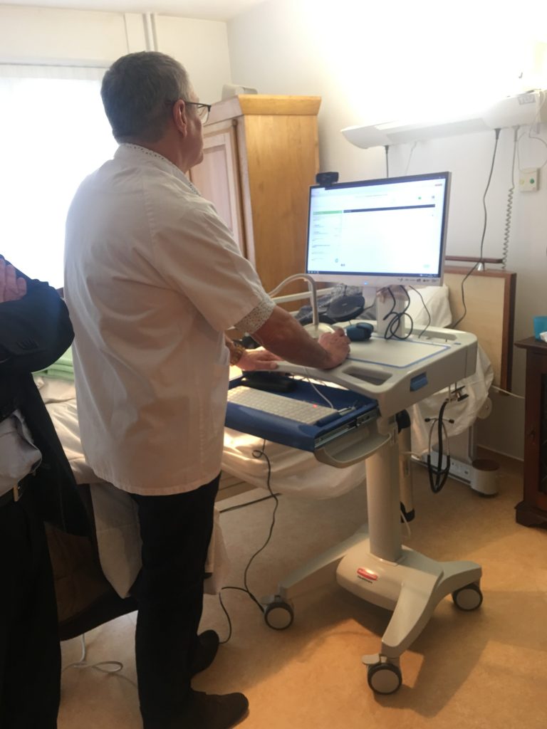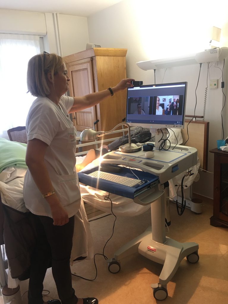 Enfin, j’ai pu assister à une démonstration d’une consultation de dermatologie en Télémédecine à la Résidence Mutualiste la Cerisaie, rue Bel-Air. Ces télé-consultations évitent un transport sanitaire à l’hôpital, les attentes sur place pour le rendez-vous, le déplacement d’un agent de l’EPHAD, qui fait défaut pendant l’aller-retour, le stress des résidents concernés…