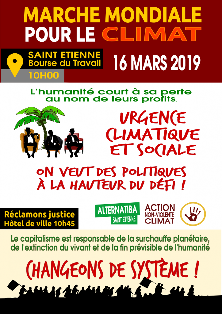 A Saint Étienne, après le succès des quatre précédentes manifestations, nous appelons à une marche pacifiste au départ de la Bourse du Travail à 10 heures, derrière la banderole « Urgence climat, il est encore temps d’agir ! ». Le cortège fera le tour des places minérales de Saint-Étienne pour terminer par des animations sur la place Chavanelle. Chacun.e est appelé.e à venir avec sièges, jeux d’extérieurs, bouées…