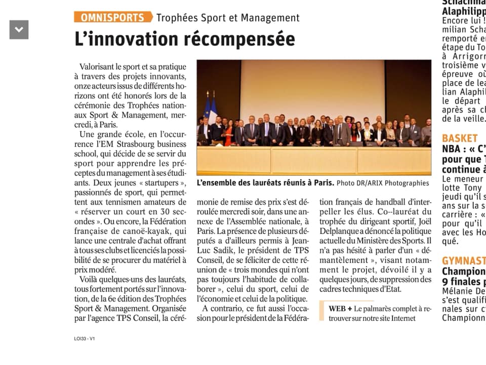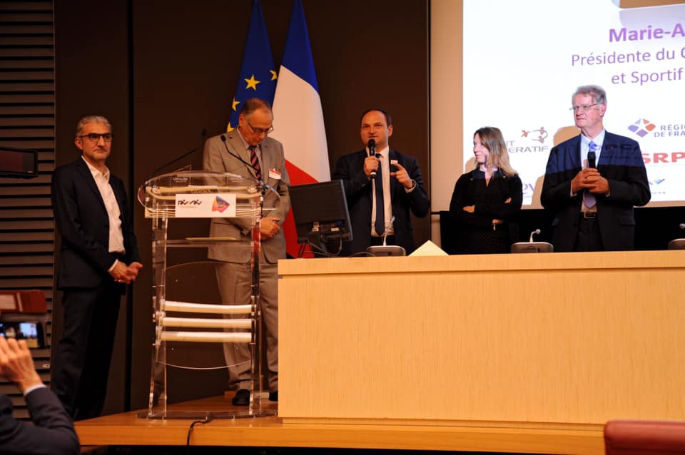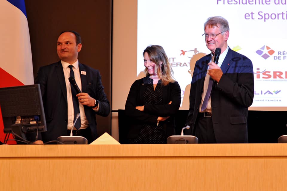 Je suis fier d’avoir remis, à l’occasion de la 6ème édition des Trophées Sport et Management à l’Assemblée Nationale, avec Bernard Lapasset, président d’honneur du Comité d’Organisation Paris 2024, deux trophées dans la catégorie dirigeant sportif de l’année à Marie-Amélie Le Fur, présidente du Comité Paralalympique et Sportif Français (CPSF) et Joël Delplanque, président de la Fédération Française de Handball.