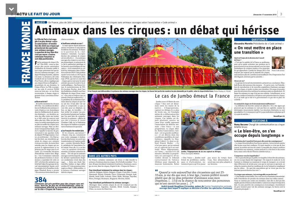 Ces nouvelles action parlementaire complète ainsi mon engagement plus global en faveur de l’interdiction des animaux sauvages dans les cirques. J’avais également co-signé les propositions de loi existantes déposées à l’Assemblée nationale sur le sujet (lire et lire).