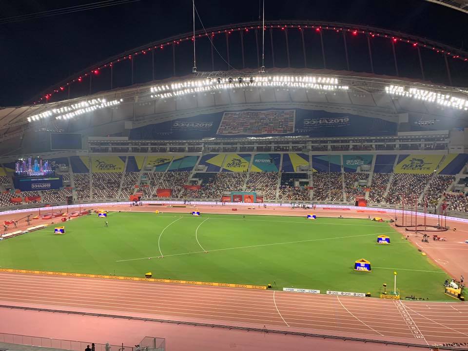 Le stade Khalifa est vide, comme ce fut le cas hier juste avant la finale du 100 mètres remportée par un américain, Christian Coleman -non suspendu après trois no shows-, les athlètes ne sont pas dans les meilleures conditions pour une année pré olympique…