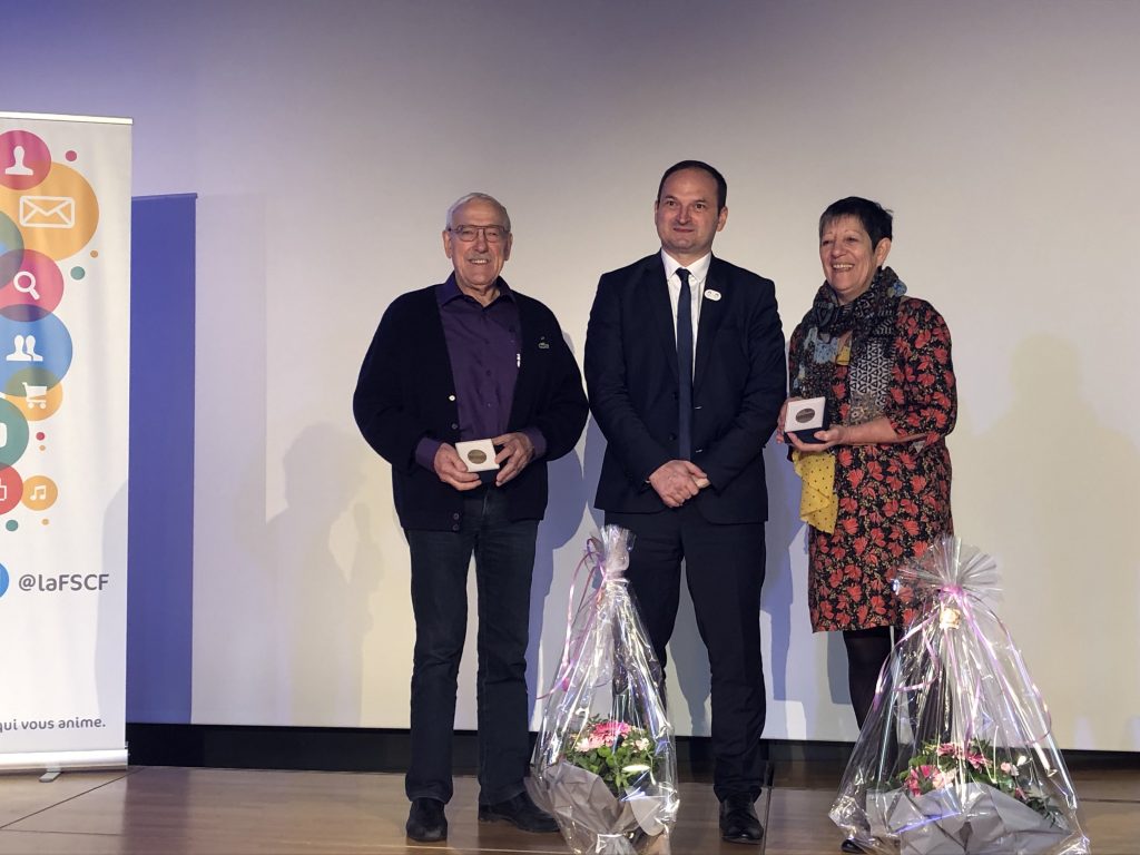 L’occasion de mettre à l’honneur deux bénévoles stéphanois emblématiques du Comité FSCF Loire : Martine Breymand, bien connue dans le milieu de la gymnastique et Michel Erintchek, pour le basket.