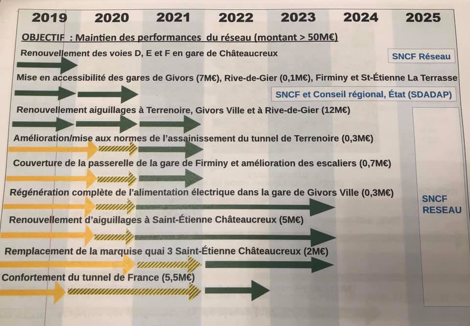 – Le lancement des études pour augmenter la capacité des trains et le renforcement de la desserte ferroviaire avec des aménagements nécessaires pour des trains tous les ¼ d’heure entre St-Etienne et Lyon…