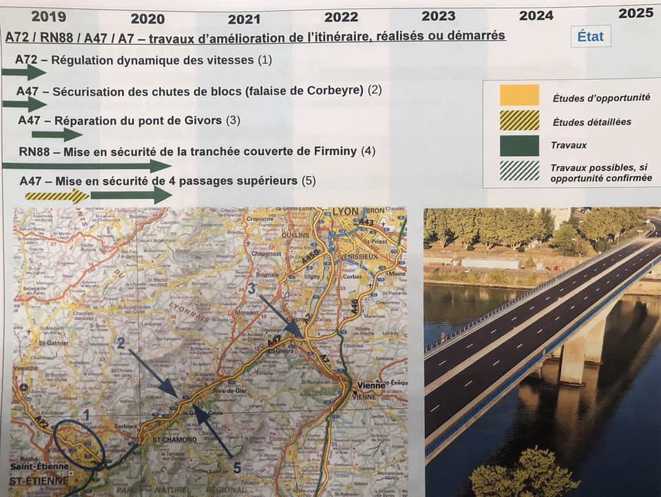 – L’amélioration des échangeurs sur l’A47 : Sardon, Madeleine, Grand Croix, Digonnière, entre 2020 et 2022 ;