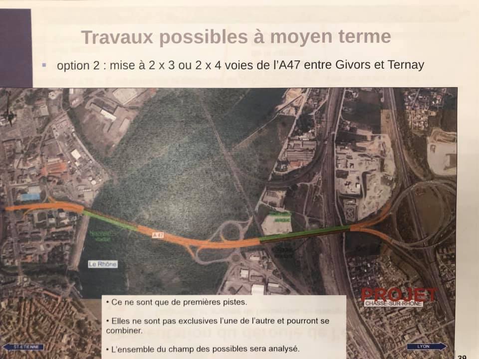 – La résorption du « nœud de Ternay », avec le lancement officiel ce jour de l’étude sur un nouveau franchissement du Rhône : au moins 6 variantes vont être examinées avec un choix fin 2021 (soit un second pont de franchissement du Rhône à Givors au Nord ou au Sud de l’existant, soit un pont accolé à l’ouvrage actuel à 2×3 ou 2×4 voies) avec une mise en service entre 2025 et 2030