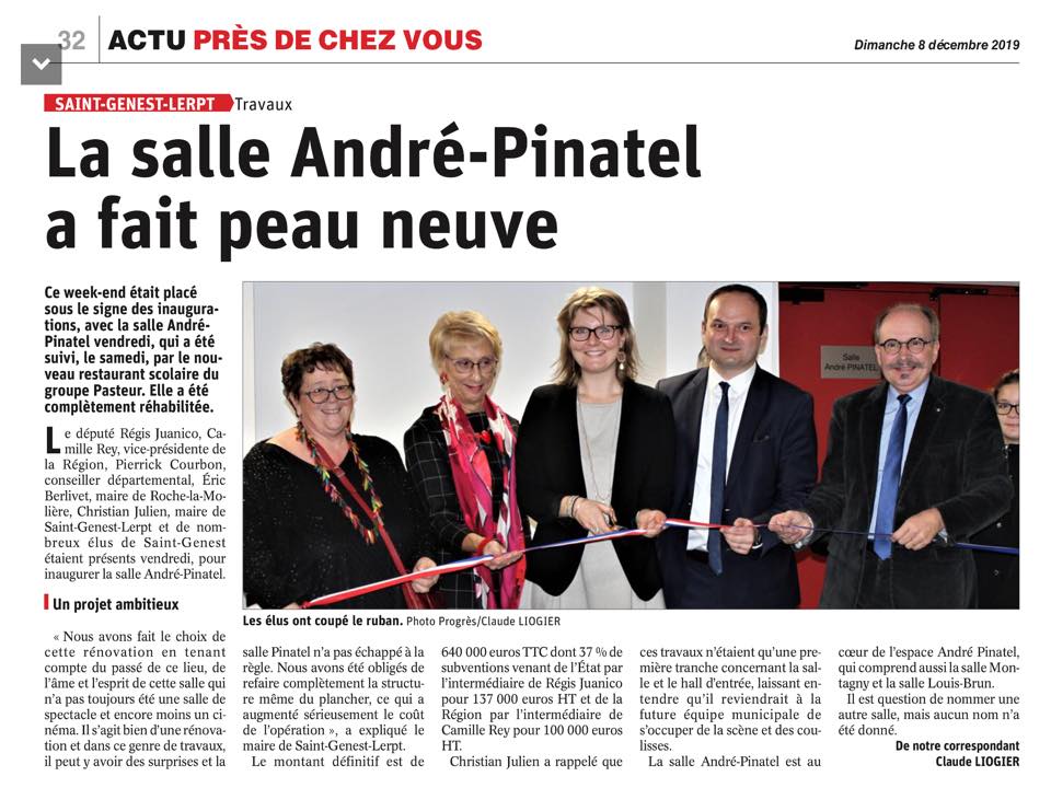 Ces travaux de rénovation de la salle Pinatel interviennent après de belles réalisations de lieux culturels dans la 1ère circonscription de la Loire ces dernières années que j’ai pu accompagner en tant que député : nouvelle salle de l’OPSIS à Roche-la-Molière et de sa médiathèque, tout comme à Saint-Genest-Lerpt avec l’Esperluette en 2013, pôle festif au Fay à Saint-Jean-Bonnefonds en 2015, rénovation du Nouvel Espace Culturel de Saint-Priest-en-Jarez en 2016…