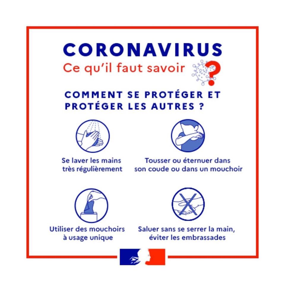 – stricte observation des barrières sanitaires : se laver très régulièrement les mains, tousser ou éternuer dans son coude, se moucher avec un mouchoir à usage unique qu’il faut mettre ensuite dans une poubelle, éviter de se serrer la main et de se faire « la bise ».