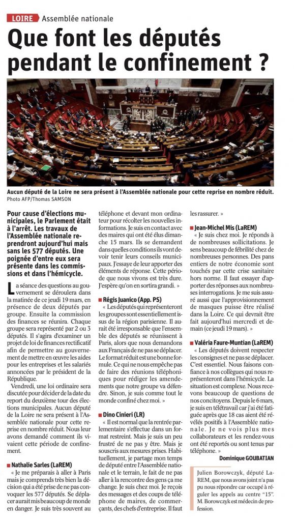 Par rapport aux règles très strictes de confinement social qui s’applique à l’ensemble de la population, les députés doivent être exemplaires en ayant recours comme pour leurs collaborateurs au télétravail depuis chez eux.