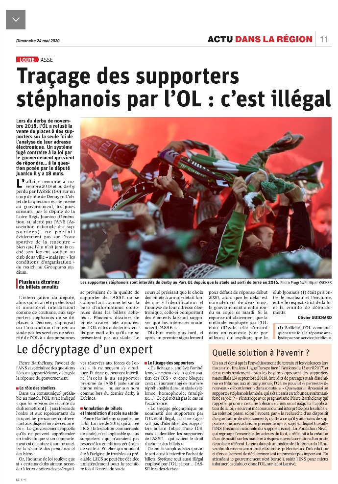 « Le traçage géographique ou nominatif des supporters par l’OL était illégal, car il ne s’agissait pas d’identifier des supporters faisant l’objet d’une ICS, mais d’identifier les supporters de l’ASSE… qui avaient le droit d’acheter des billets ».